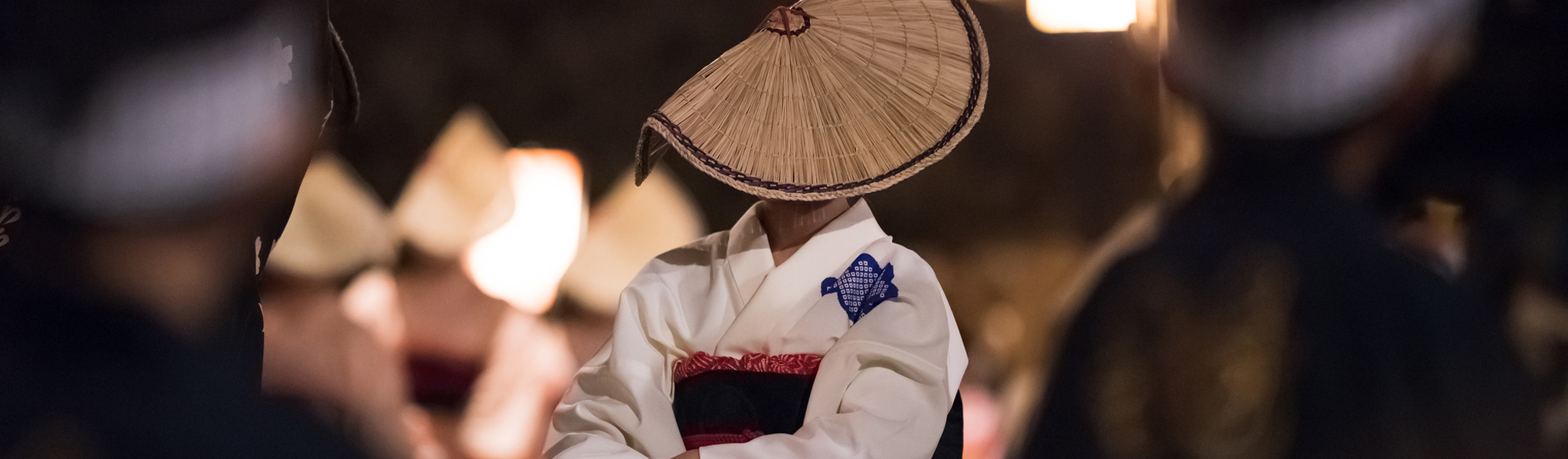 暗闇の中で接近したフラッシュ撮影は、踊り手の視界を一瞬見えなくする危険があるとともに、町流しの妨げになります。暗闇の静寂なおわらの空気を妨げないよう、安心安全な行事運営にご協力ください。